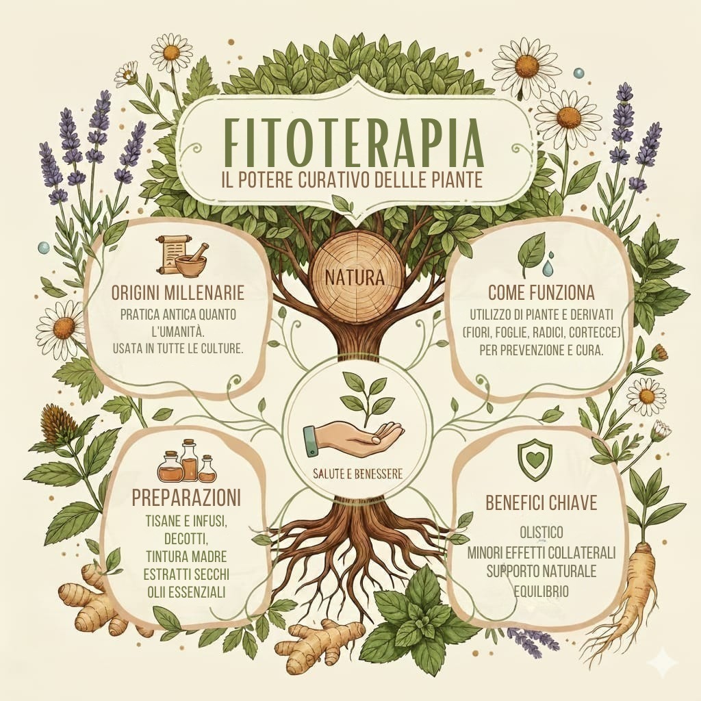 La fitoterapia (dal greco phyton, pianta, e therapeia, cura) è una pratica antica che consiste nell'utilizzo di piante e derivati vegetali per il mantenimento della salute, la prevenzione e il trattamento di disturbi. Non è una novità del nostro tempo; al contrario, affonda le sue radici nella storia umana, rappresentando la forma più antica di...