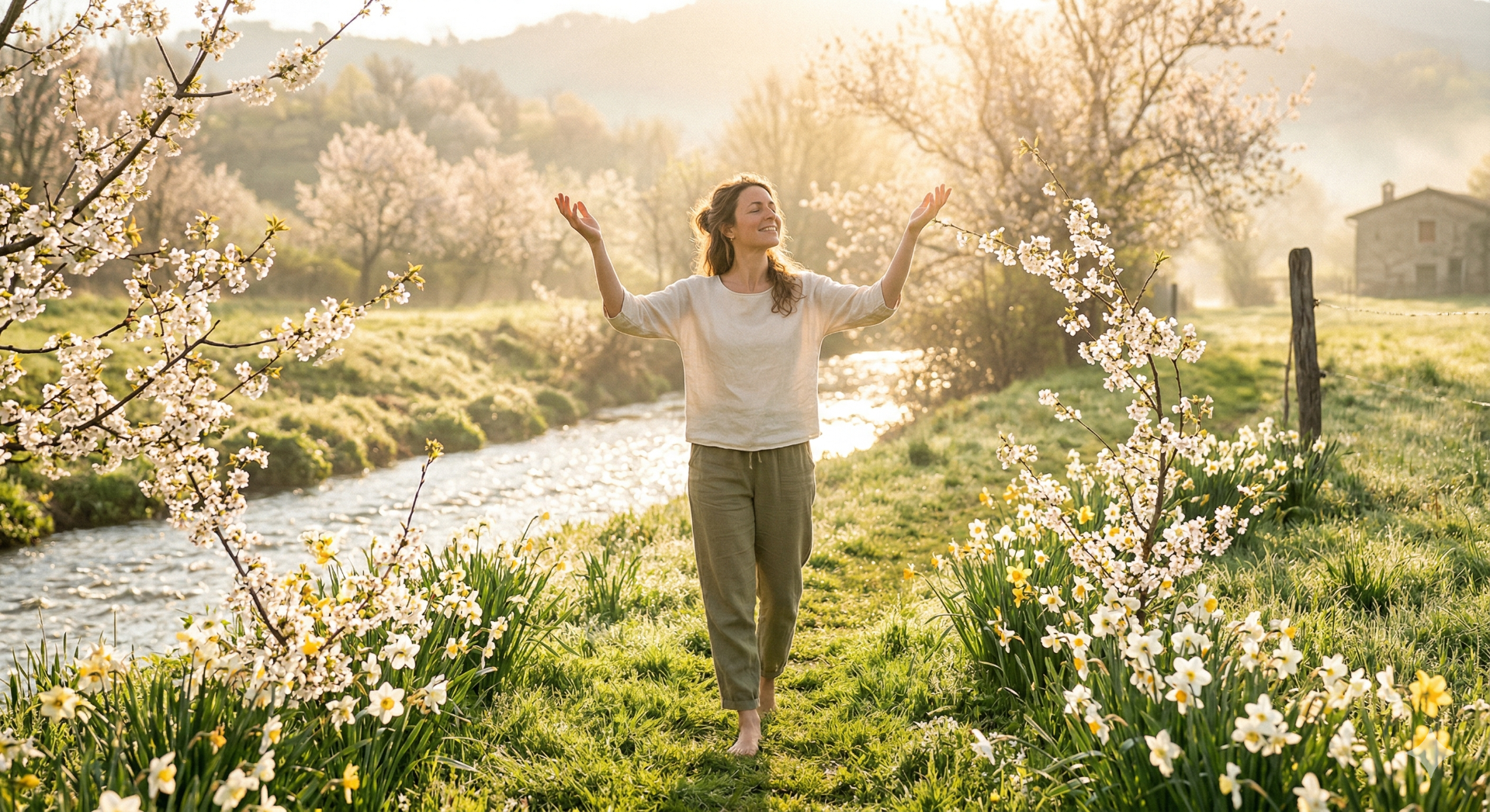 Perché funziona: La luce di aprile stimola la sintesi della Vitamina D, che agisce come un vero ormone modulando il sistema immunitario e l'umore. Unire questo al movimento aiuta a pompare la linfa e ossigenare i tessuti.
